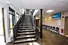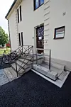 Entreprenøren har brukt høydeforskjellen i bygget til å støpe inn jevne overganger over dørkarmene, ettersom det er krav til universell utforming i det gamle skolebygget.