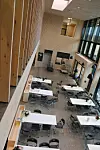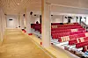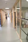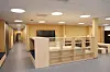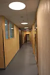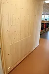 Noen steder i bygget har lyd- og brannkrav gjort at det er montert plater over massivtreelementene, men også der har det blitt skrudd opp ekstra treplater med tilnærmet lik overflate som massivtre.
