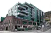 Bebyggelsen oppå og inne i teglbygget er oppbygget som flere bygg i bygget. På plan 1 bak teglfasaden ligger det næringsarealer. På plan 2 er det bolig, men på grunn av planens krav til privat uteareal til samtlige leiligheter, er fasaden trukket tilbake slik at leilighetene får private uterom bak teglfasaden og delvis med glasstak. Videre ligger det i sørøst et tun med familieboliger i form av ni rekkehus. Disse er gjort små og kompakte for å få ned prisen slik at yngre familier kan ha mulighet til å flytte inn.