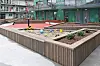 – Siktakser fra Nygårdsparken mot St. Markus kirke har styrt volumene på prosjektet og skapt variasjon i uteområder, siktlinjer og solforhold. Både i gårdsrommene og på takhagene er det lagt vekt på å skape ulike soner, med ulike oppholdsplasser. Det er etablert leketilbud for de minste barna, samt mange soner med langbord som forhåpentligvis skal være katalysator for gode nabosammenkomster. Det har vært et hovedmål å skape frodige, lune utemiljø, med årstidsvariasjoner og variasjoner i volum, der både busk og tresjikt er representert. Siden alle uteområder ligger på betongdekker, er jordvolum sikret gjennom solide plantekasser med stort jordvolum. Pulverlakkerte plantekasser i ulike farger, gir liv til gårdsrom-mene og takhagene, også på vinteren når prydverdien av vegetasjonen er mindre, sier Gunnes.