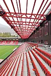 Den nye tribunen med boligdelen, er utformet som bygg i bygget.