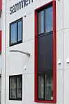 – Vi har videreført Brann Stadions mørke fasade, men vi har introdusert et nytt element. Ut av den mørke fasaden, stadion, kommer boligdelen. Denne har fått sitt eget uttrykk uavhengig av stadionbygningen. Vi kan her se artikulerte deler med varierende uttrykk på to nivåer. Det første og viktigste temaet relaterer seg til punkthusbebyggelsen rett sør og øst for Brann stadion. Vi har tatt opp volum og format, og speilet disse i deler av den nye boligfasaden. Det andre nivå er hentet fra Grungs selvbyggerkoloni rett vest for stadion. Boligene her er i utgangspunktet like, men hver bolig har likevel blitt helt unik. Vi har hentet inspirasjon fra denne variasjonen, og reflektert den i underinndelingen av boligdelen på Brann stadion. Bygget er i hovedtema utført med Steni Color fasadeplater med varierende glansgrad, og glass/aluminiumsprofiler ved innganger og trappeløp i fasaden, sier Nøstvold.