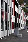 I bakkant av tribunen er det tre etasjer med totalt 288 studentboliger (235 hybler på cirka 15 kvadratmeter og 53 leiligheter fra 22 kvadratmeter og oppover). Alle enhetene har egne bad. Noen av enhetene har vinduer som vender mot stadion, men disse blir mørklagt med screens under kamper. Studentene har tilgang til felles oppholdsrom med kjøkken, TV og sofaer og til et sykkelrom. Fra Brann Stadion er det kort gangavstand til bybanestopp (kalt Brann Stadion), Høyskolen på Vestlandet og Haukeland universitetssykehus.