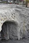 Tunnelmunningen er sikret med 281 tre meters bolter, 102 fire meters bolter og med 201 kubikkmeter sprutbetong. Fjellet hadde ikke vanninntrenging og er ikke injisert. Aakre sier at fjellet var oppsprukket og av dårlig kvalitet. Fjellsiden mot boliger er sikret med rørspunt og sprutbetong.