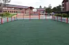 Daglig leder Sigurd L. Boasson i anleggsgartnerfirmaet Svein Boasson forteller at de har bygget opp nye utearealer med blant annet ballbinge (for fotball og basketball), amfi av norsk granitt, bålhytte, vandresti i skogen, klatrevegg, gummidekker (et med to trampoliner), skateanlegg, lekeapparater og sykkelparkering.