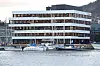 – Dermed skifter bygningen retning og løses opp mot sine omgivelser, og blir dermed det naturlige omdreiningspunktet på Marineholmen. Disse forskyvningene gir også flere typer gode fremskutte og overdekkede situasjoner, som uttrykker seg som balkonger og overdekkede uteplasser mot fjorden. Dermed signaliserer bygget et dynamisk ytre, en bevegelig form som leker med lyset og er foranderlig. Samspillet mellom den unike fjordsituasjonen forsterker kontorbyggets identitet og gir leietagerne unike profileringsmuligheter. Det røffe, men kultiverte havnemiljøets materialbruk er brukt i utomhus arealene og i første etasje. Over dette uttrykker bygget seg med kritthvite, lekne og allikevel presise glassflater, sier Nielsen.