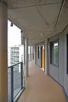 Vinduene er av tre og beslått med aluminium. Mange vinduer kan åpnes, slik at alle vinduer kan vaskes fra utsiden på en trygg måte.