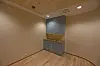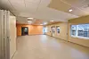 Det er belegg i beboerrom og korridorer, fliser av granitt i kantine og bårerom og parkett i møterom. Kantine og bårerom har eikespiler i himling. I kantinen er deler av himlingen skråstilt og har lysåpninger. I resten av bygget er det ulike typer systemhimlinger. Materialene er av god kvalitet, er vedlikeholds- og renholdsvennlige og skal ha lang levetid.