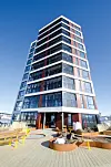 Bolig- og næringsbygget Bodø 360 er et ambisiøst og moderne bygg som blander fem etasjer kontorlokaler med ti rene boligetasjer i den øverste delen av det totalt 57 meter høye bygget. Store vinduer i leilighetene og store åpne takhager gir beboerne en helt unik utsikt over byen.