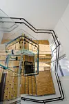 For å få til det imponerende rommet måtte entreprenøren fylle nesten hele volumet med stillaser og midlertidige tårn for å støtte opp gangbruene.