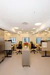 – Det er nytt for de fleste av oss med slike kontorfasiliteter som dette. Her har vi åpne kontorløsninger, mange møterom og flere forskjellige stillesoner. Førsteinntrykket er at folk trives, og tilbakemeldingene er gode, sier han.