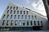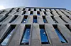 Fasaden består av til sammen 2.300 kvadratmeter med gul-beige kalkstein fra Tyskland som dekker bygget i både vertikale og skrå yttervegger. De vertikale fasadene er satt sammen av store Hansen UnitAl-fasademoduler med steinen ferdigmontert, mens de skrå er montert først med takelementer, tettet med Protan-folie og bygget opp med sløyfer og lekter før elementer med stein har blitt montert som et skall utenpå.