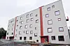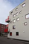 Syd for tomta ligger en eksisterende boligblokk med teglfasade. Den nye blokken er en lamellblokk, som utgjør et motstykke til den eldre naboblokken i syd.