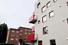 – Ammerud er en av hovedstadens særpregete drabantbyer, i sin tid regulert av arkitektene Mjelva og Norseng, som har fått plass på byantikvarens «Gule liste». Byantikvaren var skeptisk til de fem foreslåtte etasjene, og noen av de omkringliggende atriumhusbeboerne protesterte heftig. Som arkitekter argumenterte vi imidlertid sterkt for at nybygget, med det foreslåtte grepet, måtte få strekke seg opp til samme kotehøyde som den parallelle naboblokken i syd. Med støtte fra byråden fikk vi gjennomslag for dette, og planforslaget ble vedtatt av bystyret, sier han.