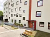 Ifølge sivilarkitekt Giedre Deliz utgjør fasadene en kontrast, samtidig som man ser slektskap i formspråket. De kvadratiske vindusformatene er gjenbrukt, men tilsynelatende tilfeldig plassert i fasaden sammenlignet med den mer tradisjonelle nabobygningen. Tilsynelatende tilfeldig plassering gjelder også balkongene.