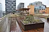 – På takterrassen er det bygd alt fra solsenger og pergola av royalimpregnert tre til blomsterbed med blant annet jordbærplanter. Det er også bygd opp et fint gårdsrom med benker og blomsterbed med mange ulike planter. Der er det også benyttet en blanding av gjenbrukte gatestein fra ulike steder i Oslo og ny stein, sier han.