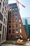 – Vi vurderte mange fasadeløsninger, men endte opp med en dansk teglstein i et langt og smalt format som er skreddersydd for dette prosjektet. Teglfasaden henger også godt i hop med nabobyggene The Wedge og DNB på andre siden av Eufemias gate, sier Aasenhuus.