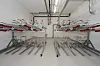 Den plasstøpte parkeringskjelleren er støpt i vanntett betong, da grunnvannsnivået i området ligger kun én meter under bakkeplan. Takket være to parkeringsheiser har man lyktes med å få 45 parkeringsplasser med kun én etasje i kjelleren.
