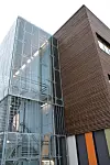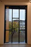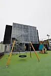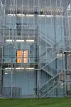 Næsje legger til at bygget innvendig skiller seg ut med mye bruk av glass.