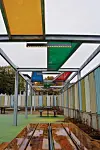 - Det er montert mange glassvegger, som gjør klasserommene åpne. I tillegg er det lagt opp til mulig samundervisning med bruk av foldevegger. Det er også små amfiområder mellom klasserommene, hvor elevene samles. Ellers preges innvendige vegger av bjørkefiner og mye bruk av farger, sier han.