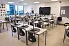 Klasserommene befinner seg i etasjene over, og er beregnet for inntil 30 elever per klasse.