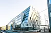 60 centimeter utenpå den lyse Alucubondkledningen i fasaden mot sør, er det en utkraget dobbelt glasskjerm med integrerte solceller. Solcellene fremstår som små sorte kvadrater, dandert i et bølgeliknende grafisk mønster. Inkludert solcelleanleggene på takflatene, vil bygget kunne produsere 100.000 kilowattimer energi per år. Det skal tilsvare den kjøleeffekten som bygget er avhengig av.