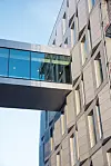 Arkitektene i LPO har utformet prosjektet som to tilnærmet like store bygningsvolumer. De er forbundet på flere plan; i de to etasjene under bakken, i første og andre etasje, fra tredje til tredje etasje ute, via en gangbro i sjette etasje og med ytterligere en utvendig gangpassasje i syvende etasje oppå gangbrua.