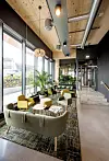 Å redusere mengden av antennbare overflater er gjort ved at tekniske sjakter, heissjakter, sekundærrom og cirka 40 prosent av dekkene er kledd med branngips. Dette i nært samarbeid med arkitekt og brannteknisk rådgiver. Nesten alle synlige overflater ellers er eksponert tre, som enten er brannimpregnert eller oljebehandlet.