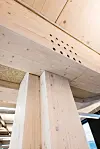 Oslotre og samarbeidspartner Ny Struktur bidro sterkt da leverandøren ble utfordret til å komme med en ny løsning. I stedet for den innlimte dragerløsningen, ble en skrueforbindelse løsningen. Den kombinerte skruer og slisser i dekkene for å oppnå maksimalt samvirke.