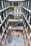 Kontorlokalene er formet rundt et stort atrium, og store vindusflater i hele bygget sørger for mye dagslys og fritt utsyn mot Youngstorget.