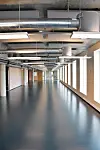 – Bygget har fått et industrielt og tøft preg. Utvendig er det kledd i grågrønn teglstein. Innvendig er det mye synlig betong, blant annet i trappegangen, og alle tekniske føringer i bygget er synlige. Det er ingen himling i bygget, og de tekniske arbeiderne har gjort en særdeles god monteringsjobb, sier Støtterud.