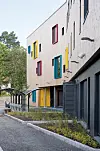 – Brannkravene var en utfordring. For å fremheve følelsen av treverk, ønsket vi å ha mest mulig synlig massivtre. Samtidig skulle vi opprettholde brannkravene. Rømningsveier kan normalt ikke ha vegger med massivtre. Vi fikk det til i flerbrukshallen, men i klasseromsfløyene måtte vi gjøre det annerledes. I stedet for synlig massivtre, er det brukt brannimpregnerende plater med kryssfinér, forteller Lie.