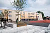 – Høydeforskjellen mellom øvre og nedre skolegård benyttes til sittetrinn og skatemuligheter. Her har man utsikt til torget og over Th Kittelsens gate og de grønne omgivelsene mot vest. Grønne «øyer» tar opp terreng og samler på regnvann til artsrike regnbed. I forbindelse med kantinen etableres et tredekke med sitteplasser. Langs den sørvendte fasaden er det en sitteskulptur som er tilpasset fasaden og som har noen bord tilknyttet, forteller Lie.