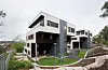 Utkraginger i terrasseblokkene er dannet ved at deler av de nederste etasjene mot øst er fjernet, noe som gir et spennende arkitektonisk uttrykk med spesielle atkomstarealer. Avstanden mellom de fire byggene gir en visuell forbindelse mellom parken og byen. Tilbaketrekking av byggene etasje for etasje bidrar til å redusere volum og høyder nedenfra, spesielt fra veien i vest.