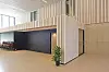 Det er sportsgulv i hallen, slipt betong der det ventes mye trafikk, teppeflis i møterom, sportsparkett i styrketreningsrom, epoksy i lager og belegg og flis i garderober. Det er i stor grad faste vegger i bygget. Møterom og foaje har spilehimling, i hallen er det åpen himling og i garderober er det systemhimlinger.