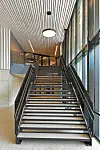 – Når en kler et bygg med aluminiumsplater som i omgivelsene er et kjent materiale brukt på landbruksbygg, er nøye detaljering og gjennomføring viktig for å få et godt resultat. Det samme gjelder for det innvendige spaltepanelet i tre. Det er til sammen montert cirka 27 kilometer med spaltepanel. Vi i Arkitektkontoret Vest har vært ansvarlig for detaljprosjektering og vi vil berømme oppdragsgiver og de utførende for å ha vært lydhøre for våre anbefalinger og valg. Samspillet mellom de ulike aktørene har vært veldig bra og det viser resultatet som står der i dag, sier Slettebø.