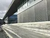 Aluminiumskledningen som dekker andre etasje og ned til vinduene i første etasje er lektet ut for å gi et relieff i fasaden samtidig er det gitt rom for at solskjermingen kan monteres bak kledning. Nedre del av fasaden er kledd med ubehandlet lerk. Dette for å gi en robust overflate, men også for å hente opp elementer fra hovedbygget som i sin helhet er utført med trekledning av lerk.