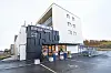Taket er flatt, og det er sedumplanter på varemottaket til Rema 1000.