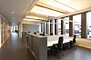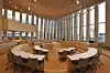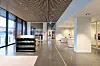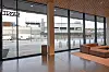 I første, andre og tredje etasje er det glassfasader. Både lobby og kantine har store glassvinduer. Hovedinngangen har buet glass både utenfor og inne i bygget og buete skyvedører i glass.