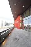Bygget er tilnærmet rektangulært. Alle betongkonstruksjoner opp til kote 2 er støpt vanntett. Bærende konstruksjon består av prefabrikkerte søyler, dragere og hulldekker og to store stående fagverk av stål. Hulldekkene er 14 meter lange og har profil fra 260 til 500 mm. Fagverkene står i fjerde etasje og holder en balkong som går over andre og tredje etasje. Taket er tekket med sedum. De mørkerøde keramiske flisene på fasaden er produsert i München. De største flisene veier over 100 kilo.