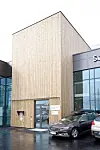 Bygget består av to rektangler som ligger på langs av hverandre. Bærende konstruksjon består av prefabrikkerte søyler, dragere og hulldekker. Det er stålplatetak i nybilhallene og tak av hulldekker i bruktbilhallen. Hallene og verksted har mye glass i fasadene, i til-legg til veggelementer av prefabrikkert betong. Trappe- og heishus har stående panel av Kebony.