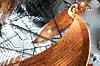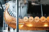 Drakehode og -hale på skipet er skåret ut av trekjærermester Rolf Taraldset, en av verdens fremste på sitt område. Planen er at han skal fortsette utskjæringene videre i senteret, en attraksjon i seg selv for utenlandske turister.