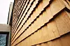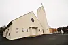 Noe av det man legger spesielt merke til fra utsiden, er den spesielle kledningen som dekker deler av kirkens fasade.