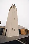 Bygget er fundamentert på fjell. Planen var opprinnelig å beholde det gamle kirketårnet.