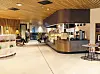 På gulvene er det vinylbelegg med oppbrettet kant og fliser. Innervegger er i gips og stender. Det er spilehimling i kafe og resepsjon og systemhimling og fast gipshimling ellers i byggene. Byggene har robuste og vedlikeholdsvennlige materialer.