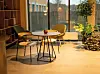 Uteområdene omfatter blant annet gangbaner på flere nivå med støpte gangbruer som står på stålsøyler og en sansehage som kan brukes hele året. Beboerne har utsikt mot Strømmeveien eller mot sansehagen.