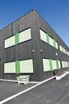 – Det er anvendt sort royalimpregnert trekledning som fasademateriale, som er med på å forsterke den enkle formen. Som kontrastmateriale og koding av inngangssoner, er det brukt fargede Steniplater, skriver Nortvedt.