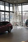 – Det var et greit prosjekt å tegne. Teknisk sett var det ingen stor utfordring, men prosjektet er gitt påkostete elementer slik at det fremstår som flotte bygg. Artige fasadeløsninger gir et eksklusivt inntrykk. Prosjektet skulle være enkelt og solid med en dobbeltfasade i tårnet. De lavere delene av byggene er enkle, utformete salgsarealer. Ideen er at man skal få en oval, stor og åpen følelse. Man har på en måte følelsen av å være i en stor hall, samtidig som de syv ulike bilmerkene har sitt eget område, sier Larsen.