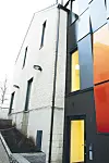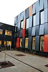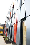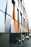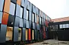 – Fasadelementene er i seg selv unike, og er en kombinasjon av komposittmaterialer og aluminium. Det gir et spesielt utrykk, og fargene skifter alt etter hvilket lys som treffe fasadelementene, sier han. Taket på denne bygningskroppen er flatt og tekket med membran.