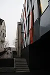 Utbyggingen av næringsbygget mot Storgata er en utvidelse av Storgata 12 mot Storgata 14. Den sammenhengende utbyggingen har to ulike uttrykk. Bygningsvolumet som vender ut mot Storgata har en mer tradisjonell stil med skråtak og lys teglstein og klassiske detaljer. Den andre delen omfatter det største volumet av utbyggingen, har et mer moderne formspråk, med fasade-elementer av aluminium og kompositt-materialer og flatt tak. Hele utbyggingen har samme dimensjon som omkringliggende bygg i Storgata.